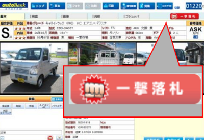 共有在庫登録車両は「商談申込」、一撃市場登録車両は「一撃落札」ボタンが表示されます。