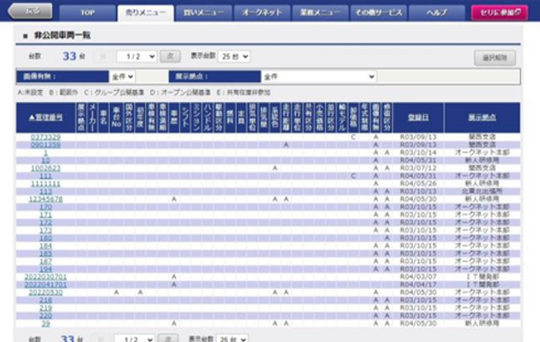 ・登録が完了し、業販掲載(共有在庫市場)が「オープン」に、一撃出品を「する」としている車両の出品が開始されます。