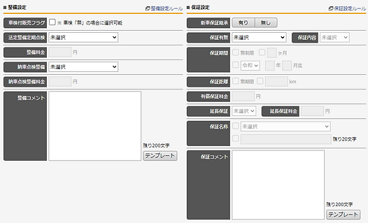 ・車両価格:小売価格を設定します。「ASK」表示することもできます。